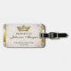 Vintages Lizenzeigentum des Gepäcks Tag. Mit einer goldenen Krone mit Juwelen auf einem extravaganten filigranen Pergamentpapier-Hintergrund. Die Ränder sind mit Schnörkeln und Imitaten, Diamanten und Perlen geschmückt. Ein gediegenes und raffiniertes Gepäckanhänger.