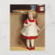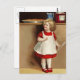 Ein kleines Mädchen, das ein rotes Kleid und einen weißen Pinaver trägt, hält einen Holzlöffel, während es sich zwei große Kürbiskuchen anschaut. Teilbild eines Vintagen Erntedanks Postcard von Ellen H. Clapsaddle.