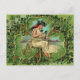 Vintages Mädchen mit Kleeblättern Postkarte. Mögen deine Segnungen die Kleeblätter übertreffen, die wachsen. Schamrock ist eine trifoliolate Pflanze - was "Kleines Klee" bedeutet. Es stellt viel Glück dar. Die irische Legende besagt, dass Saint Patrick das Kleeblatt als Symbol für die Heilige Dreifaltigkeit verwendet hat.
