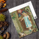 Diese Postkarte hat ein Vintage-Bild von einer deutschen Postkarte einer Mutter, die ihr niedliches kleines Mädchen dabei unterstützt, Hühner vor ihrer Haustür füttern.