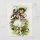 Vintages Mädchen mit Stiefmütterchen Postkarte