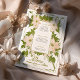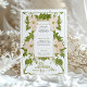 Fügen Sie Ihrem Hochzeitsempfang eine Touch Vintager Eleganz hinzu, mit diesem wunderschön gestalteten Abendmenü. Die Vorderseite des Menüs zeigt sanfte Pfirsichblüten mit üppig grünen Blätter im klassischen botanischen Stil, die die Details der Mahlzeiten mit Eleganz und Anmut umrahmen. Dieses Vintag inspirierte Design, das Set vor einem warmen, olivengrünen Hintergrund, eignet sich perfekt für naturgetreue oder rustikale Hochzeiten. Auf der Rückseite befindet sich ein einfaches und dennoch elegantes "Menu"-Skript, das Ihren Gästen einen charmanten Sake anbietet. Dieses Menü, das auf hochwertigem Cardstock gedruckt wurde, hebt jeden Tisch mit zeitlosem Stil hervor.