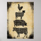 Vintage Metzgerei altes Papier Fleisch schneidet Poster. Von der Künstlerischen Äpfel Limited entworfen