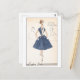 Diese Postkarte ist eine Reproduktion einer Vintagen Modeplatte/eines Designs für ein blaues Kleid der 50er Jahre aus den Creators Studios. Das Original ist in der Sammlung der New York Public Library enthalten.