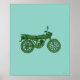 Vintages Motorrad Sketch Poster in grün und türkis.
