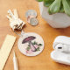 Hübscher Vintager Look Schlüsselanhänger-Design mit rosa gefärbtem Pilz mit rosa Blumen und üppig grünen Blätter auf Vintag gestreiftem Hintergrund