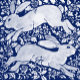 Eine Kollektion von blauen und weißen Hasen-Kacheln schmücken diesen Wandteppich in einem Gesamtmuster mit dunkelblauem Hintergrund. Die Kachel enthält antike und Vintage Designs sowie moderne Kaninchenziegel von diesem Künstler. Repräsentiert sind Kacheln von William Morris, De Morgan, Kunst und Handwerk Bewegung, asiatisch / chinoiserie, mediterran / italienisch und alte niederländische Delsoftware. Es gibt verschiedene blaue Farbtöne und einige Kacheln zeigen cremige, bräunliche Untertöne aus dem Alter und ihren Arten von Ton. Einige der Formatoptionen für diese Wandteppiche zeigen Variationen im Druckmuster an. Originelles Design und bestimmte Fliesen von Tuzi Williams.