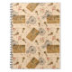 Muster mit Schlüssel, Schriften, alten Fahrrädern, Postbriefen und Blume
