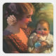 Vintages Muttertagportrait, Mama und Baby Quadratischer Aufkleber