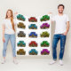 Verfügt über Vintage Oldtimer in verschiedenen Farben.