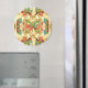 Ein stilvoller und farbenfroher Vintager Wallpaper-Muster-Magnet mit einem altmodischen türkisfarbenen und orangefarbenen tropischen Blumenmuster auf goldfarbenem und beigem Hintergrund.