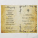 Dieses Hochzeitsprogramm ist einfach, aber schön. Es ist für eine katholische Zeremonie konzipiert und zeichnet sich durch ein Vintages Design mit einem Imitat Pergament-Hintergrund, eine lakate Skriptkalligraphie, ein Kruzifix oder Kreuz und elegante Rollen in den Ecken aus. Das Innere hat den Raum für alle Details der Zeremonie erweitert, während der Rücken Informationen über die Hochzeitsfeier zusammen mit einem kurzen Dankeschön-Hinweis hat. Eine schöne Art, Ihre Gäste zu empfangen und es ihnen leicht zu machen, zusammen mit der Zeremonie zu folgen.