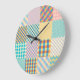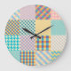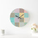 Vintages Patchwork: Textil - Nahtloser Hintergrund Große Wanduhr
