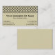 Geben Sie Ihrer Visitenkarte eine elegante Touch mit diesem Vintagen Pergament und modernem Quarrefoliendesign. Die schwarze Quarrefolie hebt sich vor dem cremefarbenen Hintergrund hervor und macht Ihren Namen oder Geschäftsinformationen einfach lesbar. Personalisieren Sie mit Ihrem eigenen Text und machen Sie eine Aussage mit Ihrem beruflichen Bild. Mit dieser klassischen Visitenkarte in schwarz-cremefarbenem Quatrefolien machen Sie einen erstklassigen Eindruck. Das einzigartige Quarrefoliendesign fügt Ihrem Namen oder Geschäftsinformationen eine Touch Stil hinzu. Passen Sie mit Ihrem eigenen Text auf und zeigen Sie mit dieser eleganten und stilvollen Karte Ihre Professionalität. Diese elegante Visitenkarte besticht durch ein wunderschönes Quatrefolienmuster auf einem Vintagen Pergament-Hintergrund. Das Schwarz-Creme-Farbschema sorgt für einen zeitlosen Look, der Ihren Namen oder Geschäftsinformationen auffällig erscheinen lässt. Passen Sie mit Ihrem eigenen Text auf und heben Sie Ihr berufliches Bild mit diesem luxuriösen Design.