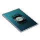 Verzierte, filigrane Kunst auf tiefblauem, geprägtem Hintergrund mit ovaler Mittelmedallion, die mit Rose geschmückt ist.