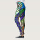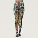 Perfekte Leggings mit einem Bild eines Pfauenflecks aus Buntglas. Erschaffen mit rotem, orangefarbenem, gelbem, grünem, blauem, aqua- und rosafarbenem Buntglas mit Blumenmuster. Mit Ihrem Namen für die endgültige Touch anpassen