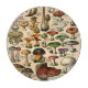 Stilvolles rundes Glasschneidenbrett mit Vintagen Illustrationen der sortierten Pilze. Fertigen Sie besonders an, um Ihren eigenen Text zu addieren. Macht eine große Geschenkidee.