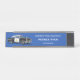 Dieses elegante Namensschild ist die perfekte Wahl für Polizeibeamte mit einem Vintagen schwarz-weißen Polizeiauto auf den links und Ihren Namen und Ihre Abteilungsdetails auf der rechten Seite in weißer Typografie auf blauem Hintergrund zum Personalisieren.