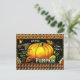 Vintages Kürbissiegel. Die Farben und Randmuster markieren sich gegen das Schwarze. HTM-Bilder