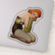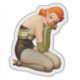 Vintages Red Head Button mit Fischnet-Strümpfen Aufkleber