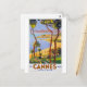 Völlig wieder hergestelltes und digital erhöhtes Vintages Plakat, das eine Augenansicht des Vogels von Cannes zeigt. Im Vordergrund ist ein Strand; im Hintergrund ist die Stadt und die Berge. Bildhöflichkeit der Kongressbibliothek. Veröffentlicht zwischen 1930-1940.