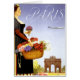 Wieder hergestelltes und digital erhöhtes Vintages Reiseplakat, das einen Frauen-Blumenverkäufer hält einen Korb der Blumen zeigt; im Hintergrund ist der Arc de Triomphe und im Himmel, ein Konstellationsflugzeug. Unvollkommenheiten entfernt. Farben korrigiert. Bildhöflichkeit der Kongressbibliothek.