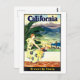 Diese Postkarte ist eine Reproduktion eines altmodischen Reiseplakats, in dem Kalifornien Werbung gemacht und "Reisen mit dem Zug" gelesen wird.
