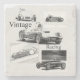 Eine Vielzahl von Vintagen Rennautos in einem Vintagen Stil abgebildet.