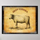 Vintages Rindfleischdiagramm mit nummerierten Teil Poster