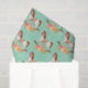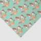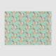 Gewebpapier mit einem charmanten und fantasievollen Bild eines altmodischen Rockpferdes mit einem hübschen Blumenstrauß in Rosa und Gelb. Der Hintergrund ist ein hellgrünes, glänzendes Damast-Muster.