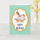 Vintages Rockpferd mit Blumenstrauß Geburtstag Karte