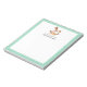 Personalisiertes Notizblock mit einem charmanten und fantasievollen Bild eines altmodischen Rockpferdes mit einem hübschen Blumenstrauß in Rosa und Gelb. Ein weißes Quadrat, um die Notizen im Inneren zu schreiben. Der Hintergrund ist ein hellgrünes, glänzendes Damaskusmuster.