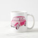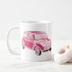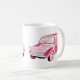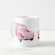 Diese Tasse kennzeichnet eine Malerei durch Anne Harwell eines Vintagen rosa Autos.
