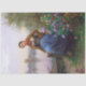 Creative & Unique Decoupage Tissue Paper mit einer Reihe von Texturen, Mustern und Vintagen Illustrationen in lebhaften, gedämpften Farbpaletten. Ideal für Entcoupage, Schrottbuchung und andere Papierboote. Daniel Ridgway Knight, Maler am Ufer des Flusses, zeigt eine Vintage Französin mit einem roten Schal, der an einer Felswand neben einem Schiff auf dem See sitzt und im Vordergrund Blume hat.