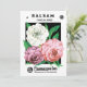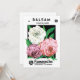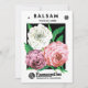 Vintage Illustrationssaatgut-Produktkennzeichnung Kunstwerbung mit Balsam Mixed Camellias. Grobe schöne Frühlingsrosa, weiße und lila Lavendel-Blume im Garten oder auf einem Bauernhof. Antiquitätenwerbung für F. Lagomarsino & Sons Company, Sacramento, Kalifornien.