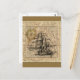 Vintager zeichn eines alten Weltschiffs mit Segel auf beigem Hintergrund mit einer Europakarte und einem Dial der nordost- und westlichen Richtung, alte Landkarte der europäischen Länder france germany italy und spain in einem beige farbenen Papier und mit einem großen alten Schiff mit vielen Segel auf See.