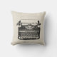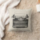 Vintages Schreibmaschinenbild auf Imitat-Leinwand. Auf französisch sind die Wörter, ", das es eine lange Geschichte ist". Rückseite des Kissens hat die Übersetzung.