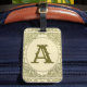 Dies ist ein Vintages Gepäckanhänger in einem grünen Design mit einer Vintagen Abbildung eines Rahmenrandes aus dem öffentlichen Bereich. Der Anfangsbuchstabe des Monogramms ist anpassbar.