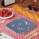 Karo in diesem Design mit einem Vintagen Schwimmmuster.