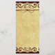 Vintages Scroll Rustic Country Wedding Programm mit einem Vintagen bedrängten Look Papier-Design mit eleganten Schriftrollkanten und einem maronroten braunen Hintergrund. Fügen Sie Ihre individuelle Hochzeitsprogrammierung sowohl der Vorder- als auch der Rückseite dieses Hochzeitsprogramms hinzu. Verwenden Sie die Schaltfläche "Anpassen" oder fügen Sie den Vorlagenfeldern einfach Informationen hinzu.