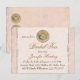 Chic Brauttee Party Dusche in einem antiken pfirsichfarbenen grafischen Hintergrund. Die Grafik eines weißen, halbtransparenten Overlays weist beiderseits weiße antike Kanten auf, und ein hübsches Vintages Bild eines Teekopfes verziert die Oberseite der Karte. Personalisieren Sie den schwarzen und goldbraunen Text für Ihr Brauttee-Party.