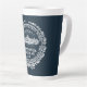 Stilvolle Latte Tasse besticht durch das Vintage Siegel der Stadt Boston MA in Weiß auf dunkelblauem Hintergrund. Es wurde das offizielle Siegel im Jahr 1914 und ist ein Rundbild, das zeigt: einen Blick auf die Stadt Boston, das Motto "SICUT PATRIBUS, SIT DEUS NOBIS" (was bedeutet: "Gott sei mit uns, wie er war mit unseren Vätern"), und die Inschrift "BOSTONIA CONDITA AD. 1630 CIVITATIS REGIMINE DONATA AD. 1822."