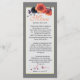 Die elegante, dunkle Herbstkarte mit Blumenmuster hat eine ganz bestimmte gotische Atmosphäre. Ein grauer Rahmen und ein zweiter Rand mit Kerzenlicht umgeben Ihre Speisekarte mit 3 Vorspeisen und Aperitif. Ihre Hochzeit und Vorlagen machen sie zu einem Sake. Die Speisekarte im Hintergrund zeigt ein verstreutes Muster der gleichen Herbstfloralen auf Grau. Genießen Sie die Eleganz in Ihrem romantischen Empfang.