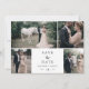 Diese Vintage Script 4 Foto Collage Save the Date Karte ist perfekt für eine minimalistische Hochzeit. Das romantische Schwarz-Weiß-Design besticht durch eine einzigartige whimsical Typografie mit schlichter böhmischer Optik. Anpassbar in jeder Farbe. Behalt das Design minimal und elegant, wie es ist, oder personalisiere es durch Hinzufügen von eigenen Grafiken und Kunstwerken.