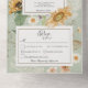 ERHÄLTLICH MIT ODER OHNE QR CODE ODER MIT ODER OHNE AUSWAHL DES ABENDS. Dieses Design besticht durch einen schönen Rahmen von sanften Aquarellfarben-Sonnenblumen und anderen sommerlichen Blumen auf einem sanften, grün gestressten Hintergrund. Es ist romantisch mit einer Touch von Vintag. Es wurde von der einfachen Bauernpresse erschaffen und ist Teil der Vintagen Summer Sunflower Floral Wedding Suite mit Karten.
