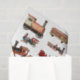 Ein wunderschönes Vintages Spielzeugzug-Muster. Ein perfektes Design für Zugliebhaber, Zugsammler, Dampfzug-Liebhaber etc. Aquarellbilder von Retrozügen und -wagen in verschiedenen Modellen, Größen und Farben.