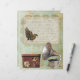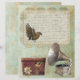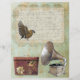 Vintages Spitzenlabel mit einem Vogel und einem alten Skript, das mit einem Gramophon und einer Hutbox über Vintages Gold und grünes Papier geschrieben wird