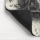 Vintages Spuk Haus Mousepad - Intrikant detailliertes, nahtloses Muster mit Viktorianischen Spuk Häusern, Hexen auf Broomsticks, flatternden Fledermäusen, Vollmonden und nackten Skelettbäumen. Dieses monochrome Design, das in einer Vintagen, toilen Ätzung dargestellt wird, erinnert an einen gotischen, Storybook-Charme - perfekt für Halloween, Dunkle Akademie oder Sporen-Themen.