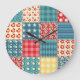 Vintages Steppmuster: Patchwork-Hintergrundmuster. Große Wanduhr