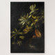 Vintages Stillleben mit Passionblüten auf schwarz Puzzle
